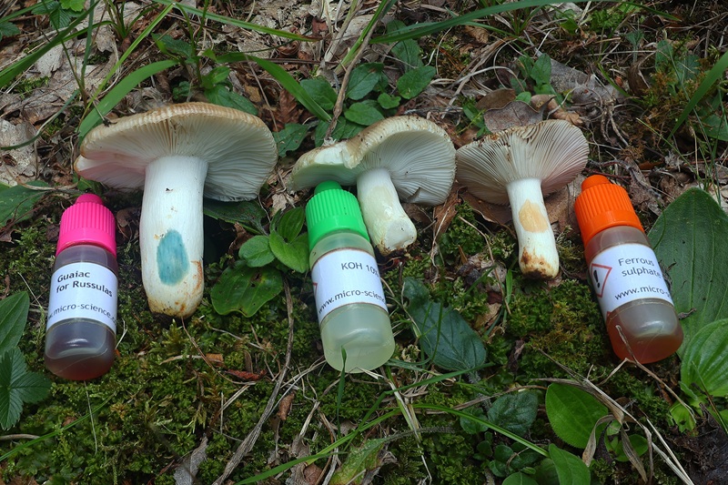 - kalijev hidroksid (KOH) koji će zlatnom reakcijom izdvojiti Russula subfoetens od slične Russula foetens, a crvenom reakcijom na bazi stručka Russula insignis