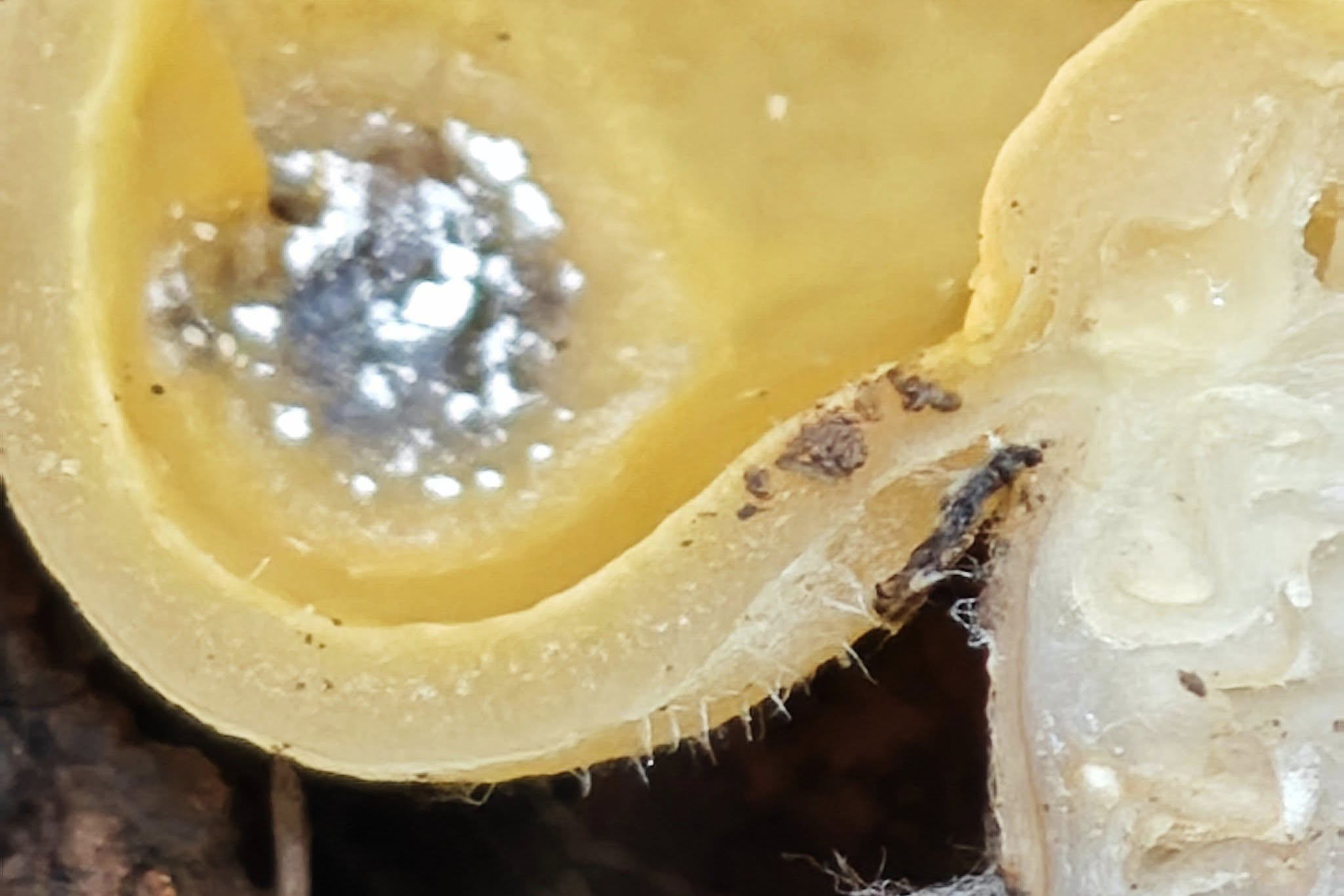 Etimologija: onos (gr.) = magarac + ous (gr.) = uho. Po obliku. Engleski naziv: Hare's Ear Plodno tijelo (apotecij): 1-9 cm široko i 3-11 cm visoko, oblika je zdjelice ili nepravilnog uha s bočnim urezom po cijeloj dužini, sužava se na bazi, skoro korjenasto, unutarnja je himenijalna strana glatka, bjelkasta, žuto-oker ili svijetlosmeđa, često je s crvenkastim odsjajem, ponekad s malim crvenkastim mrljama; s vanjske je strane brašnast, žuto-oker, gladak, rub je kovrčast i često uvijen prema unutrašnjoj površini, na bazi je bijel i malo narebran. Spore: Široko su eliptične, glatke, s dvije uljne kaplje, prozirne, 10.5-14.3 x 4.8-7.5 µm; otrusina je bjelkasta do kremasto-žuta. Meso: Tanko, prilično je elastično, žilavo, lomljivo, žuto-smeđe je do svijetlosmeđe; miris je oštar na gljive, a okus je slatkast na bademe. Stanište: Raste u ljeto i jesen, skupno, rijetko pojedinačno, u bjelogoričnim i crnogoričnim šumama, u mahovini, voli suho i pjeskovito tlo. Slike je snimio Safet Omerović - Basso, 2.11.2025., na nepoznatom lokalitetu u Istri. Doba rasta: 6, 7, 8, 9, 10, 11 Status jestivosti: JESTIVA - Jestiva je vrsta izvrsne kvalitete, prvenstveno zbog dobrog okusa. Nažalost, pronađene su male količine toksina giromitrina, ali u neznatnim količinama pa gljivu prije uporabe treba dobro termički obraditi ili osušiti kako bi i te male količine giromitrina isparile. Napomena: Dio je skupine s nešto konzistentnijim mesom, za razliku od skupine gdje se nalazi žilasta tavica (Disciotis venosa) kojoj je meso tvrdo i lomljivo. Ime je dobila po karakterističnom obliku koji podsjeća na uho. Od ostalih je vrsta iz roda Otidea slična smeđa uška (Otidea cochleata) koja je u obliku gnijezda, s vanjske strane je smeđa i glatka, a s unutarnje smeđa ili tamnosmeđa, raste zbijeno s drugim plodnim tijelima. Ima dosta gljiva koje su sličnog oblika, ali s gledišta jestivosti uglavnom nisu interesantne.