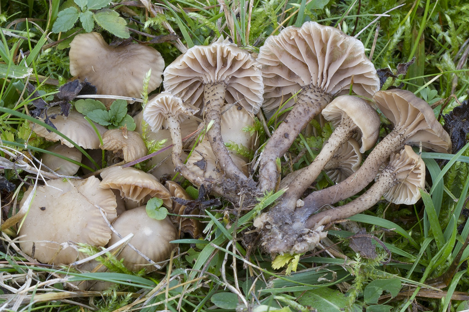 Etimologija: atra, atrum (lat.) = crn + punctus (lat.) = točka, mrlja. Po dekoraciji na stručku. Engleski naziv: Dotted Fanvault Klobuk: 0.4-2.5 cm širok, isprva je konveksan, kasnije je izravnato-konveksan, ponekad je slabo ulegnut na sredini, površina je bez sjaja, glatka (pod povećalom je baršunasta ili sitno dlakava), kasnije je prema sredini blago naborana ili žiličasta, osušen se koncentrično raspucava, vodenasta, kod svježih je plodnih tijela žućkasto-siv, krem, žućkasto-smeđ do smeđ, prema sredini je maslinasto-smeđ, žućkasto-smeđ do smeđ, osušen ili u starosti je svjetliji i obično s izraženim kontrastom između svjetlijeg ruba i tamnije sredine, na rubu je krem, prema sredini je narančasto-siv, sivo-smeđ, svijetlosmeđ do žućkasto-smeđ, na sredini je obično svijetlosmeđ, žućkasto-smeđ do smeđ, rub je podvijen, kasnije je ravan, ponekad je blago nazubljen, po vlažnom je vremenu slabo prozirno narebran do 1/2 promjera. Stručak: 1-5 cm visok i 1-4 mm debeo, valjkast i sužen prema bazi, obično je zakrivljen, ponekad je stisnut ili uzdužno ižlijebljen, obično je čitav prekrivene crnim točkicama ili ljuskicama, prema bazi je ponekad s crnim vlakancima, baza je ponekad bijelo baršunasta, na vrhu je svijetlosmeđ do žućkasto-smeđ, prema bazi je tamnosmeđ ili čokoladnosmeđ. Listići: Rijetki, široki su 1-3.5 mm, 14-26 ih dopire do stručka, kratko se ili dugo spuštaju po stručku, isprva su krem ili narančasto-sivi, ubrzo su sivkasto-narančasti, sivkasto-smeđi, često su s izraženom ružičastom nijansom, oštrica je iste boje, često je tamnija blizu stručka, a ponekad je svjetlija od lica. Spore: Široko su eliptične, prozirne, glatke, tankih stijenki, neamiloidne, nedekstrinoidne, 4.1-6.4 x 3.1-4.9 μm, Me = 5 x 3.9 μm, Q = 1.13-1.62, Qav = 1.29, bazidije su 4-sporne, usko batinaste, sužene i zakrivljene prema bazi, 33-46.5 x 5-6.5 μm, bazidiole su valjkaste do usko batinaste, često su zakrivljene, tupe, oko 15-43 x 2-6 μm, pleurocistide su odsutne, cheilocistide obično nisu dobro definirane, slične su bazidiolama, široko su batinaste, 7-30 x 4-19 μm, trama listića sastoji se od zamršenih, valovitih, 3-12 μm širokih hifa, sastavljenih od 20-100 μm dugih segmenata, često su kraćih od 50 μm, pileipelis se sastoji od hifa, terminalni segmenti na rubu klobuka su kruškoliki ili batinasti, rjeđe su u obliku boce, obično su tankih stijenki, 13.5-68 x 5.5-37 μm, donji su segmenti obično izrazito uži, valjkasti ili batinasti, ponekad su i napuhani, kratki i mali segmenti kraći od 5 μm su rijetki, rijetko su s bočnim izbočinama, nerazgranati, 2-49 x 2-20 μm, terminalni segmenti hifa na sredini klobuka su obično uži, uglavnom su široko batinasti, često su u obliku boce, kruškoliki ili eliptični, 12-5-60 x 4.5-34 μm, donji segmenti obično su valjkasti, nisu napuhani, 2-63 x 3-18 μm, trama klobuka sastoji se od zamršenih, nepravilno usmjerenih, 2.5-4 μm širokih hifa, caulocistide su tamnosmeđe i ponekad inkrustirane, obično su u gustim snopovima, tankih ili ponekad blago zadebljanih stijenki, terminalni su segmenti uglavnom batinasti, ponekad su glavičasti ili kruškoliki, tupi, često su savijeni, 11-54.5 x 4-20 μm, kopče su odsutne u svim dijelovima; otrusina je bijela. Meso: Debelo je 0.5-3 mm na sredini klobuka, elastično, sivkasto do sivkasto-smeđe; miris nije izražen, kasnije je neugodan, okus nije izražen. Stanište: Raste u ljeto i jesen, kao saprofit tla u bjelogoričnim šumama, te po livadama i pašnjacima, u mahovini i travi. Doba rasta: 7, 8, 9, 10, 11 Status jestivosti: NEJESTIVA - Nejestiva je vrsta. Napomena: Prepoznatljiva je po crno točkastoj površini stručka.