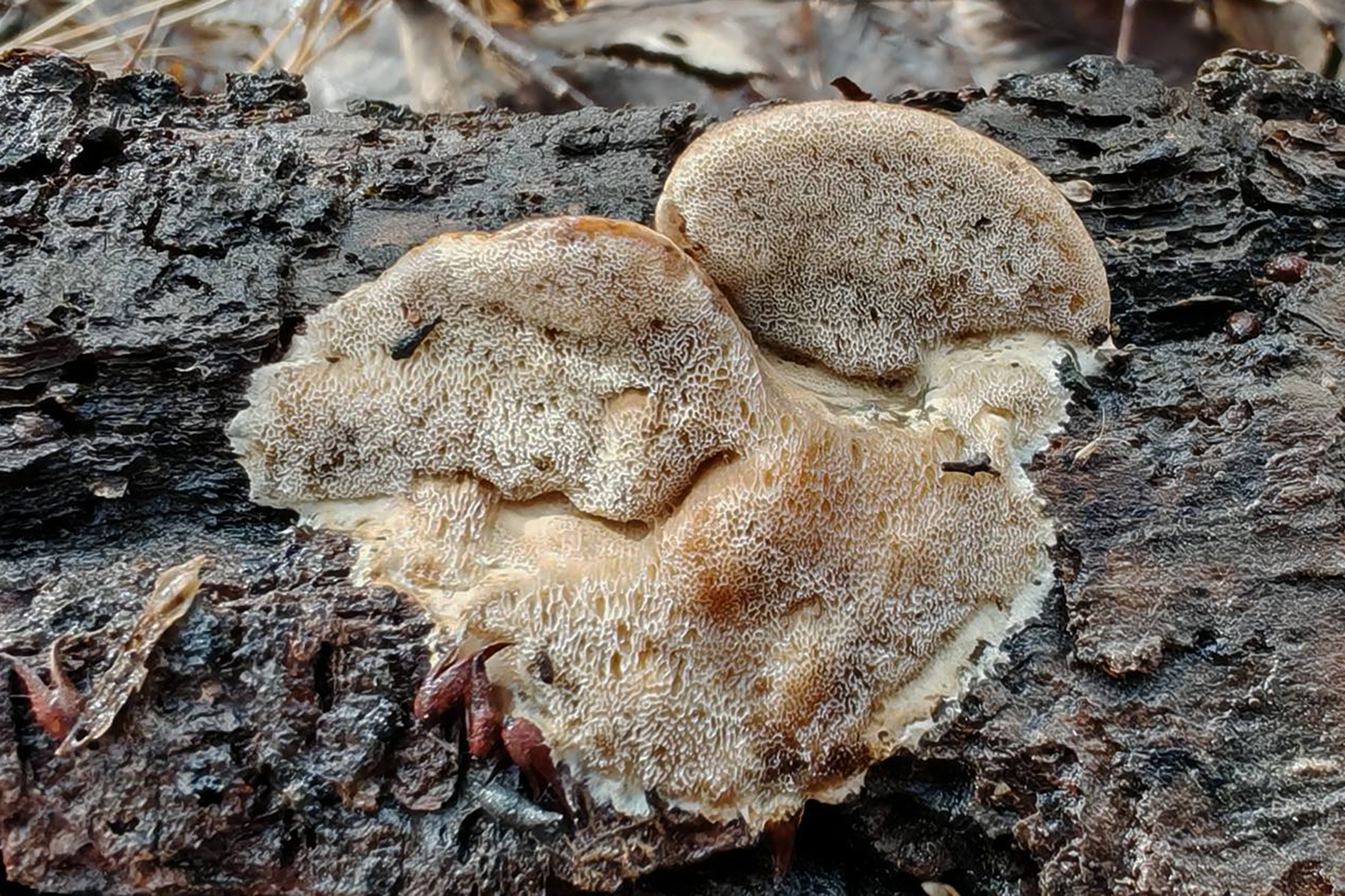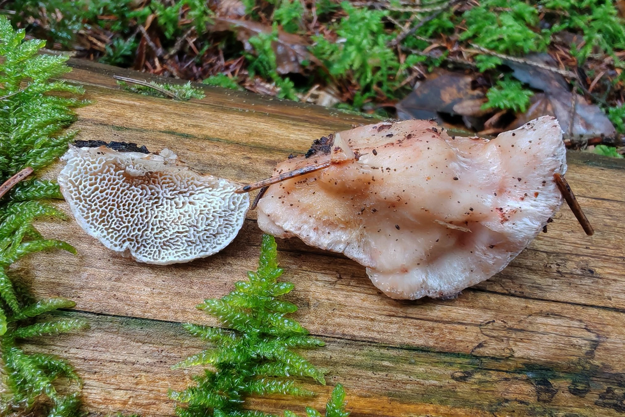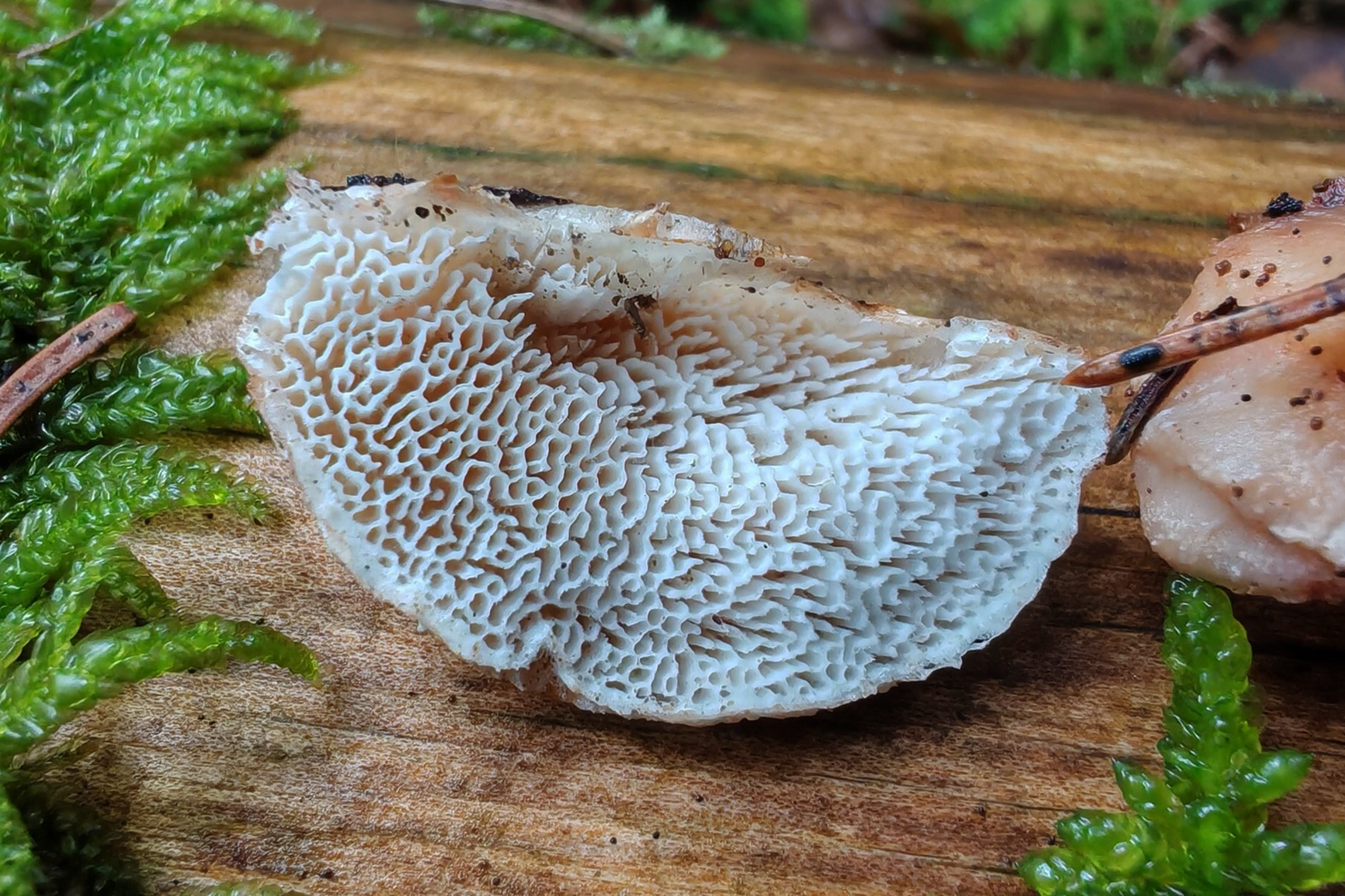 Etimologija: undosus (lat.) = valovit. Po obliku. Plodno tijelo: 1-5 (6) cm široko i do 1 cm debelo, razrašteno, kao izliveno, izdižu se mali izduženi vijugavi klobučići, međusobno su lateralno spojeni, bijeli, kasnije su krem i svijetlooker, sitno su baršunasti, nisu ili su jedva pojasasti, rub je valovit, donja je himenijalna površina prekrivena rupičastim slojem. Rupice/cjevčice: Višekutne, labirintne, dosta su široke, 1-2/mm2, rastrgane, nekad izgledaju poput šiljaka, bijele; cjevčice su do 10 mm duge. Spore: Valjkaste, kobasičasto su zakrivljene, glatke, s tankim su pregradama, neamiloidne, 4-6 x 1.3-1.8 µm, Q = 3.2-3.6, bazidije su usko batinaste, 12-15 x 3.5-4.5 µm, 6-sporne, hife su s tankim i debelim pregradama, 5-8 µm široke (cromushroomas: spore su (4) 4.8 - 6.1 (6.7) × (1.1) 1.3 - 1.7 (1.9) µm, Q = (2.8) 3.2 - 4.1 (4.4), N = 60, Me = 5.5 × 1.5 µm, Qe = 3.6, bazidije su 13-15 × 3.5-4.1 µm, N = 5, hife su s kopčama); otrusina je bijela. Meso: Bjelkasto, 1-2 mm debelo, u starosti je tvrdo i lomljivo; miris nije izražen, a okus je blag do gorkast. Stanište: Raste tijekom godine kao saprofit krupnijih drvnih ostataka raznog crnogoričnog drveća, najčešće smreke ili bora, a rjeđe bjelogoričnog drveća, obično jasike, breze i vrbe; izaziva smeđu trulež drva. Slike je snimio Anton Gračanin, 6.2.2026., na jeli. Doba rasta: 1, 2, 3, 4, 5, 6, 7, 8, 9, 10, 11, 12 Status jestivosti: NEJESTIVA - Vjerojatno je jestiva vrsta, ali se smatra nejestivom zbog tvrde konzistencije i gorkog okusa mesa. Napomena: Smatra se rijetkom vrstom koja raste na predplaninskim područjima u prisutnosti smreke i na vlažnijim terenima. Razvija se na strani suprotnoj od izvora svjetlosti, obično na dosta trulim deblima.
