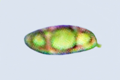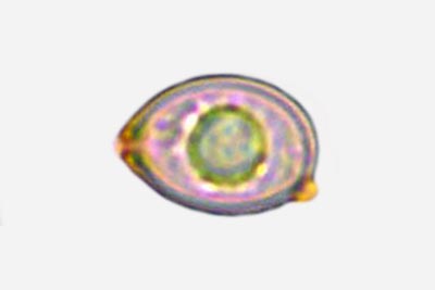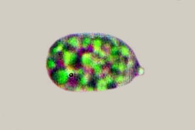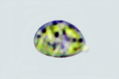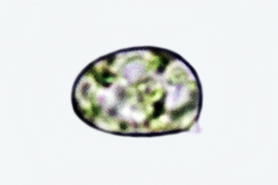 | Lycogala flavofuscum | Kuglaste, 7-8 µm; otrusina je blijedocrvena do ružičasto-smeđa. |  |