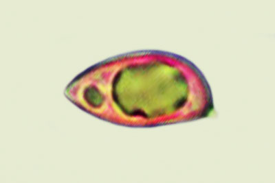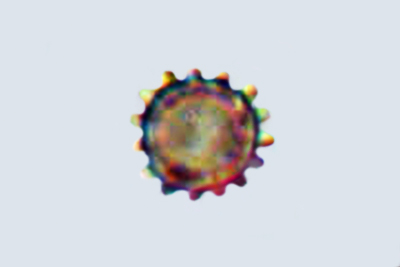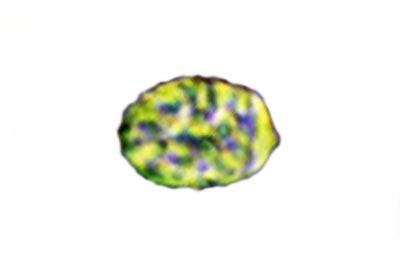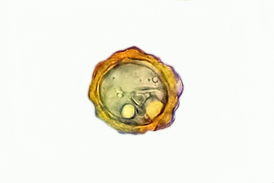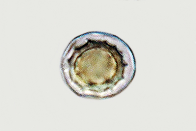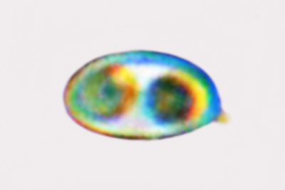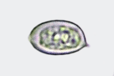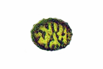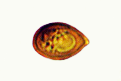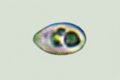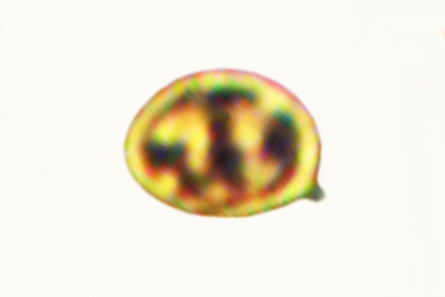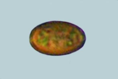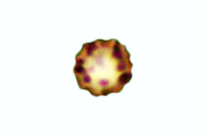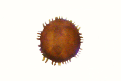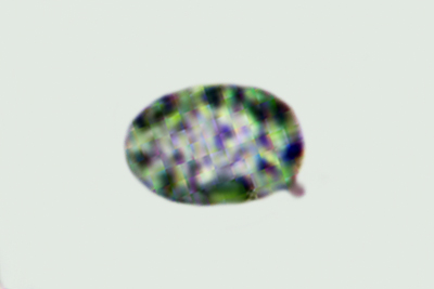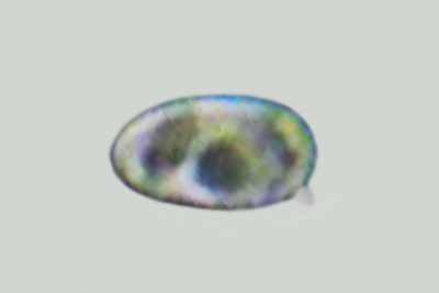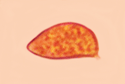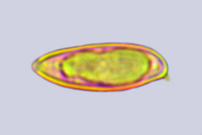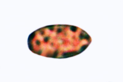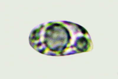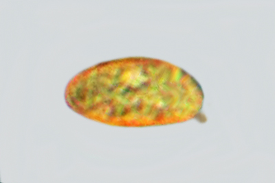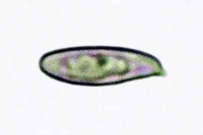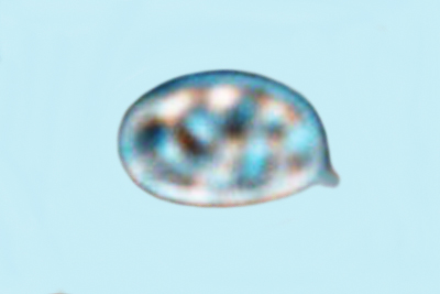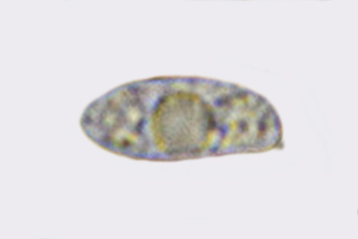 | Lycogala epidendrum | Kuglaste, gusto mrežaste, (5.7) 6.5 - 8.2 (8.6) × (5.1) 6 - 7.2 (7.7) µm, Q = 1 - 1.3 (1.4), N = 30, Me = 7.2 × 6.4 µm, Qav = 1.1; otrusina je najprije sivo-ružičasta, a kasnije je blijedooker. |  |