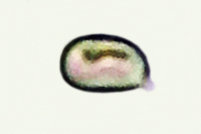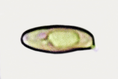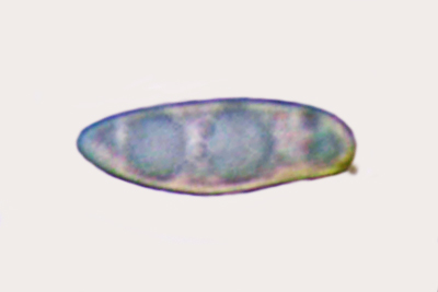 | Holwaya mucida | Kratko eliptične do blago duguljaste, glatke, s dvije uljne kaplje, prozirne, 2.7-4 x 1.2-2 µm; askusi 40-65 x 3-4 µm; otrusina je crna. |  |