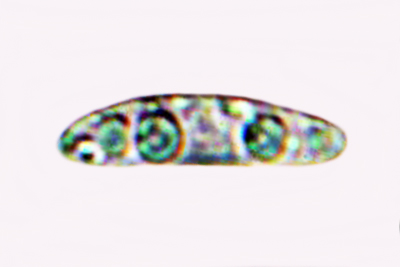 | Leptosphaeria doliolum | Valjkaste, ravne ili lagano zakrivljene, s pregradama, sužene na pregradama, glatke, prozirne, 15-19 x 2-3 µm, N = 15, Me = 18 x 3 µm; otrusina je žućkasto-smeđa do smeđa. |  |
