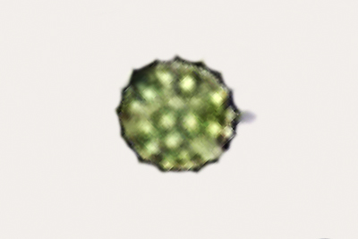 | Lycoperdon perlatum | Kuglaste, bradavičave, (2.6) 2.8 - 3.4 (4.0) × (2.4) 2.7 - 3.3 (3.8) µm, Q = 1 - 1.1, N = 120, Me = 3.1 × 3.0 µm, Qav = 1; otrusina je maslinasto-smeđa. |  |