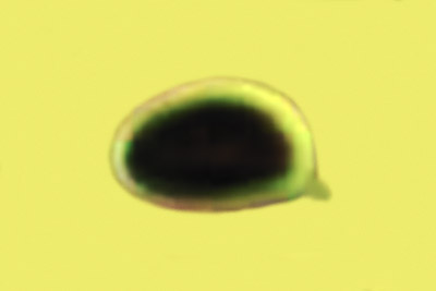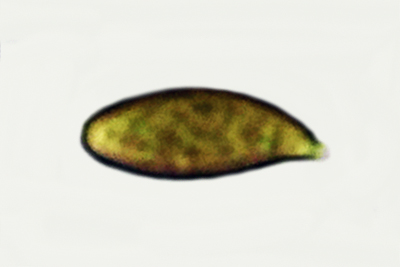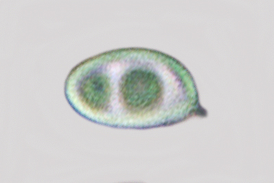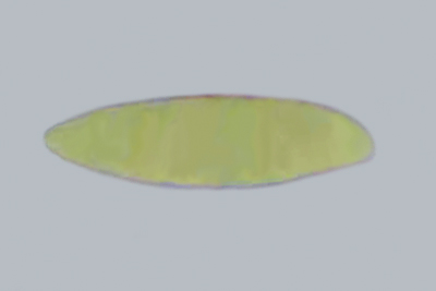 | Hygrocybe chlorophana | Eliptične, nisu sužene na sredini, glatke, 7-10.5 x 4-6.5 µm, Q = 1.3-1.8, Qav = 1.6; otrusina je bijela. |  |