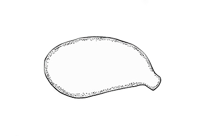 | Hohenbuehelia petaloides | Eliptične, glatke, neamiloidne, 5-8.5 x 3.5-5 µm, Q = 1.4-1.7 (cromushrooms: (5.1) 5.4 - 6.8 (7.4) × (3) 3.3 - 4 (4.4) µm, Q = (1.5) 1.52 - 1.8 (1.9), N = 120, Me = 6 × 3.6 µm, Qav = 1.7); otrusina je bijela. |  |