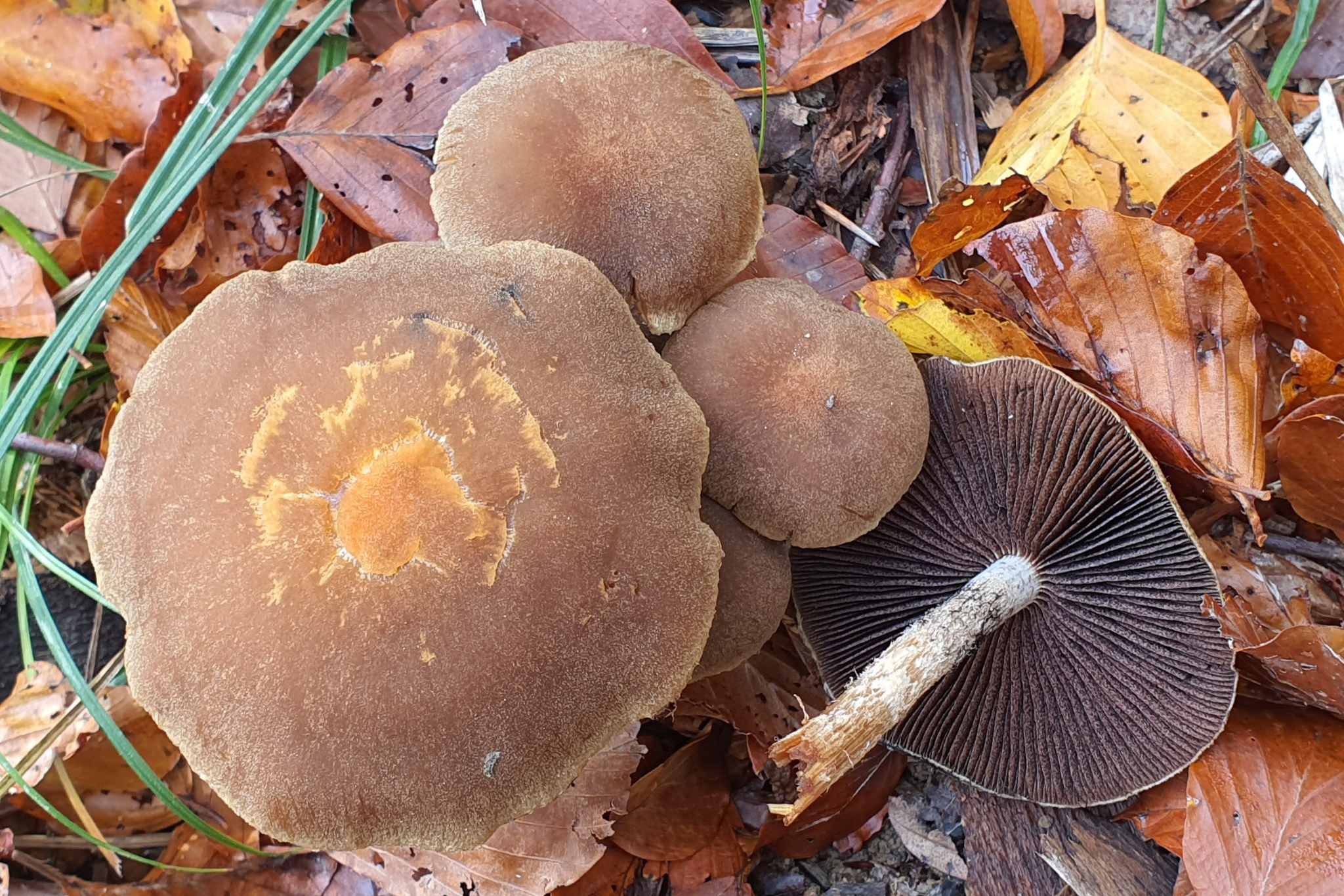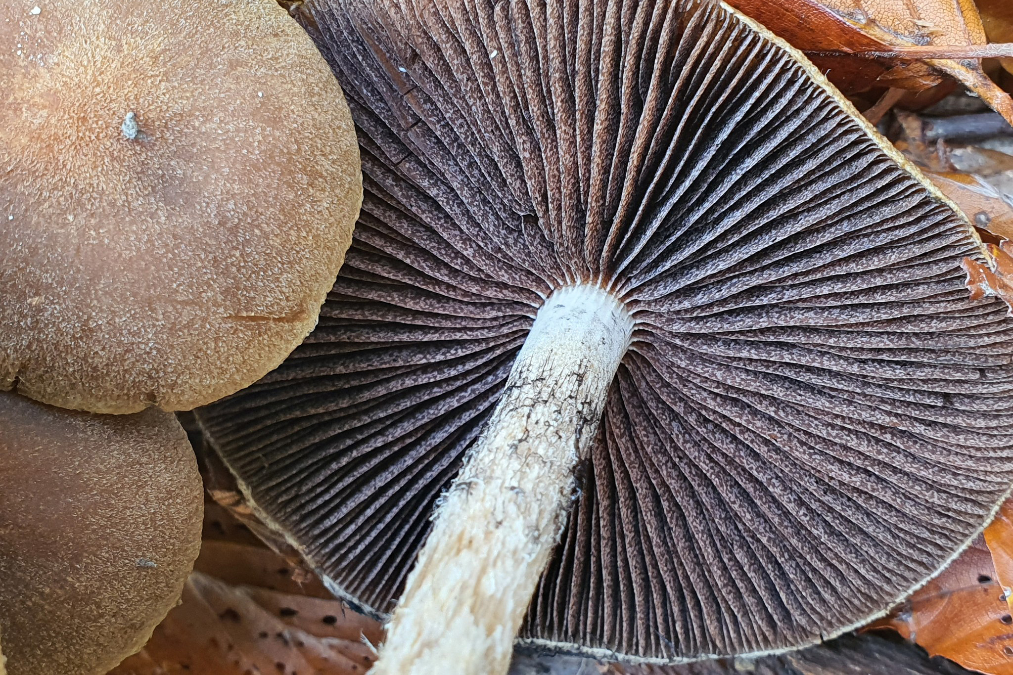 Engleski naziv: Weeping Widow Klobuk: 3-8 (10) cm širok, mesnat, stožast; smeđ ili sivo-smeđ, maljav, baršunasto-vlaknast, pomalo čehast, rub je iskrzan od ostataka ovoja. Stručak: 2-10 cm visok i 0.4-1 cm debeo, dug, lomljiv, šupalj; svijetlosmeđ ili žuto-smeđ, prekriven je prljavo smeđim vlakancima, pod klobukom je ostatak zastorka u obliku crne prstenaste zone od poispadalih zrelih spora, bjelkasto je vlaknast, vrh je svjetliji. Listići: Gusti, izmiješani su s mnogo lamelulama, izrezani su uz stručak, jedva su prirasli, na listićima su sitne kapljice poput suza; smeđi, ljubičasto-smeđi, tamnosmeđi i li crni, oštrica je svjetlija i nazubljena. Spore: Limunaste, grubo bradavičave, 8-11.5 x 5-6.5 µm; otrusina je crna. Meso: Čvrsto, svijetlosmeđe, oker-smeđe ili crvenkasto-smeđe; miris nije izražen ili je lagano aromatičan, na gljive ili gorke bademe, a okus je blag do malo gorkast. Stanište: Raste u ljeto i jesen, busenasto ili pojedinačno, kao saprofit tla na šumskim stazama, livadama, parkovima i rubovima šuma. Prve dvije slike snimljene su 6.11.2023, a treću i četvrtu snimio je Neven Ferenčak, 25.10.2025. Doba rasta: 7, 8, 9, 10, 11 Status jestivosti: JESTIVA - Jestiva je vrsta slabe kvalitete. Dosta je teška za determinaciju pa neiskusni gljivari ne bi trebali sakupljati ovu vrstu u prehrambene svrhe. Dosta su podijeljena mišljenja oko jestivosti ove vrste, neki autori navode da je jestiva i dobre kakvoće. Otrovna zasigurno nije, ali nije uputno konzumirati nekvalitetne gljive kada u to vrijeme ima puno boljih vrsta. Napomena: Karakteristična je po krpastom rubu klobuka i prstenastim ostacima zastorka na stručku.