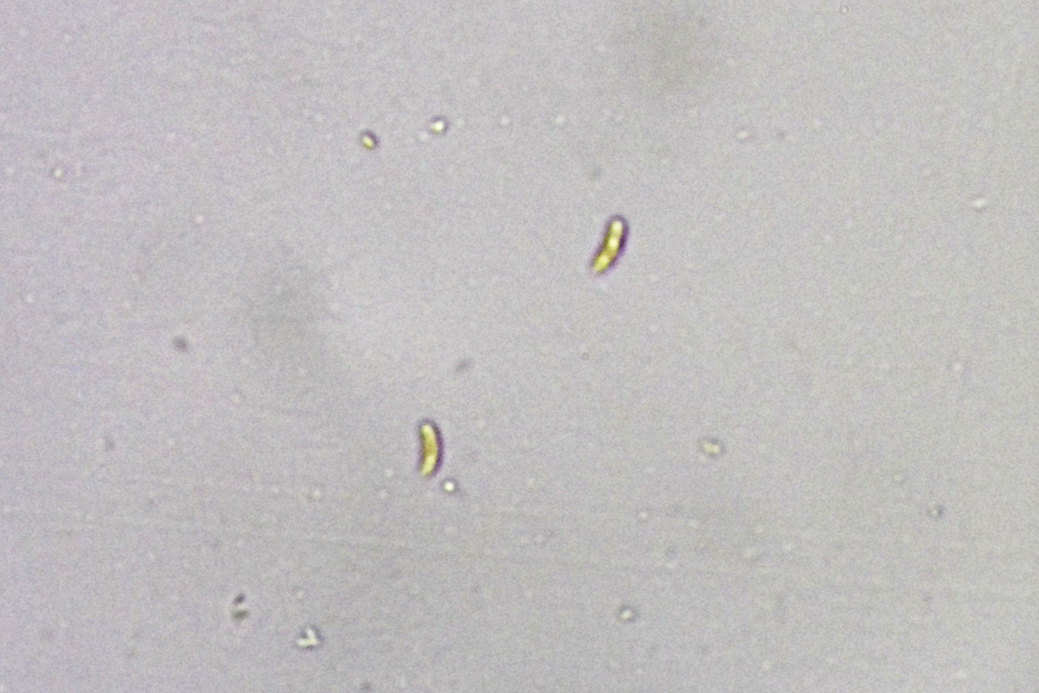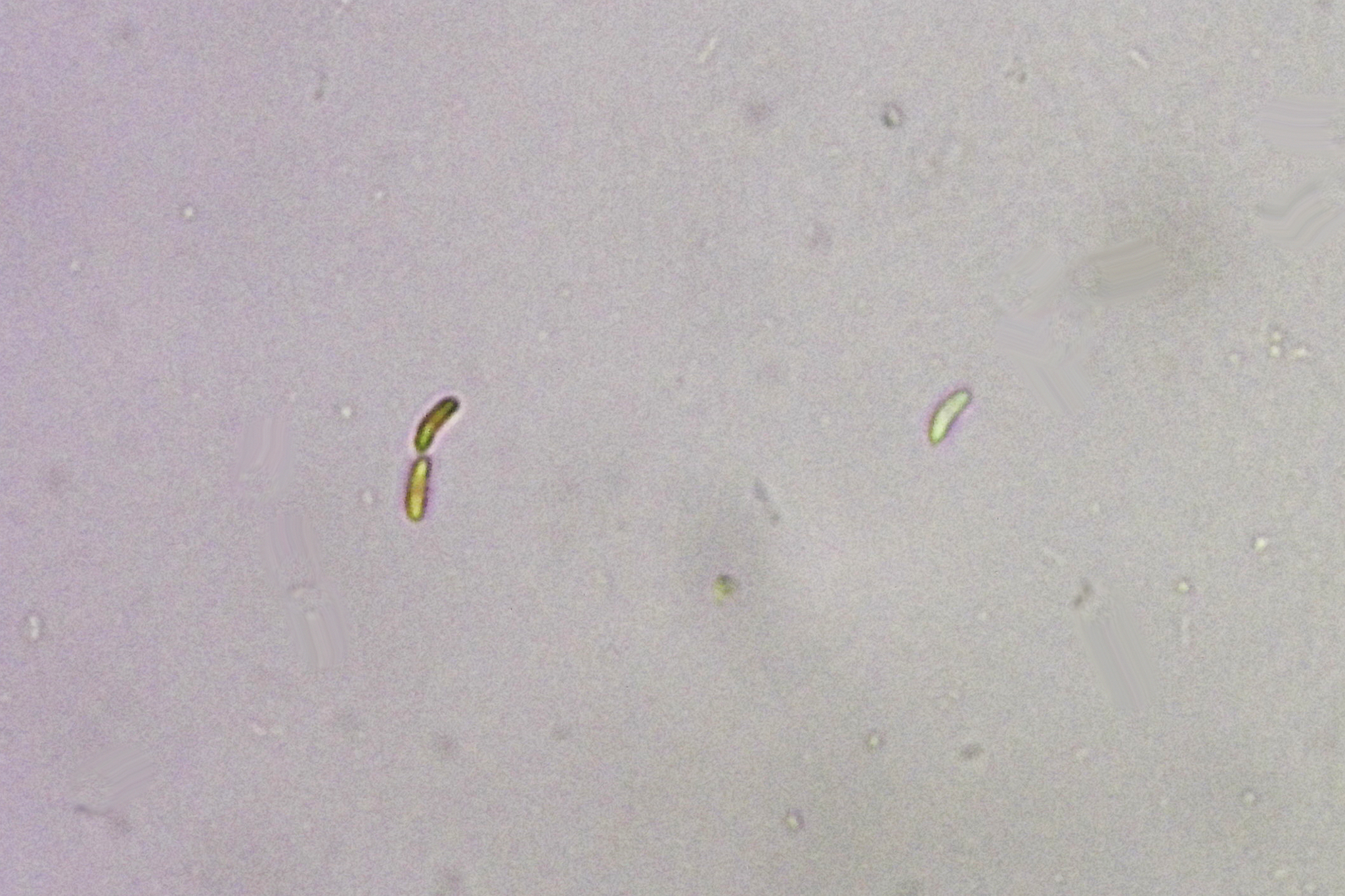 Plodno tijelo: 6-30 cm dugo i 1 mm debelo, manja se plodna tijela kasnije spajaju u veće površine, razrašteno, površina je neravna, sitno paperjasta od cistida, glatka, blago bradavičava, naborana, često s kapljicama, bjelkasto, krem-oker, smeđe-žuto, rub je bjelkast, ali može nestati nakon nekog vremena, uglavnom je s tamnijim žuto-narančastim mrljama. Spore: Kobasičaste, glatke, prozirne, s uljnim kapljama, 4.5-7 x 1.2-2 µm, bazidije su cjevaste, 4-sporne, duge su 35-45 µm, cheilocistide su valjkaste, tankih stijenki, slabo inkrustirane, pseudocistide su duge 200-250 µm, sa stijenkama koje bubre u KOH (cromushrooms: spore su (4.5) 4.9 - 6 (6.9) × (1.2) 1.3 - 1.6 (1.9) µm, Q = (3) 3.5 - 4.3 (4.9), N = 100, Me = 5.5 × 1.4 µm, Qe = 3.9, bazidije su 29-41 × 3.2-3.8 µm, N = 9, cheilocistide su 20-34 × 3.4-4.3 µm, N = 9, pseudocistide su 206-254 × 5.7-8.4 µm, N = 16, hife su 1.8-3.5 µm); otrusina je bijela. Meso: Vrlo tanko, plutasto, bjelkasto do kremasto-oker; miris je osvježavajući do aromatično ugodan na anis, voće i limun, a okus nije izražen. Stanište: Raste tijekom godine u miješanim i crnogoričnim šumama kao saprofit krupnih drvnih ostataka različitih vrsta crnogoričnog drveća, najčešće bora i smreke, na donjoj strani trupca bez kore, uzrokuje smeđu trulež. Prvu sliku snimio je Mladen Matišić, 15.1.2024., a ostale su snimljene 24.2.2026., na lokalitetu Brlenić kod Krašića. Doba rasta: 1, 2, 3, 4, 5, 6, 7, 8, 9, 10, 11, 12 Zaštita: ZAŠTIĆENA - OSJETLJIVA VRSTA Status jestivosti: NEJESTIVA - Prikupljanje je zabranjeno zbog ugroženosti. Napomena: Kod determinacije obratiti pozornost na stanište, boju i miris mesa na limun.